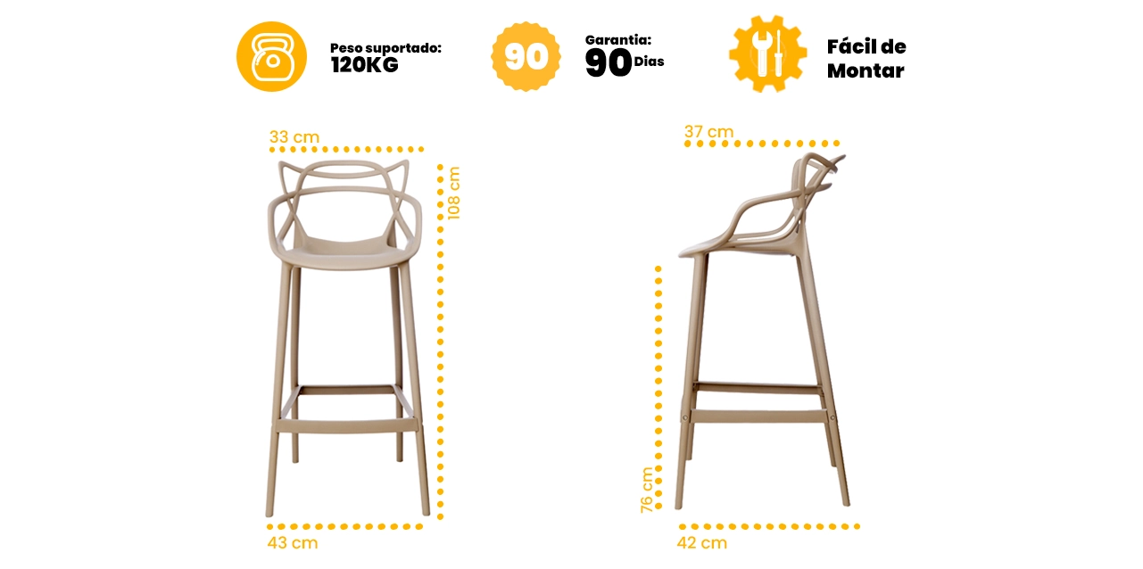 A Banqueta Allegra Waw Design une design moderno, conforto e durabilidade, sendo ideal para cozinhas, áreas gourmet, bares ou salas de estar. Fabricada em polipropileno de alta resistência, oferece assento confortável e estrutura robusta no uso diário.