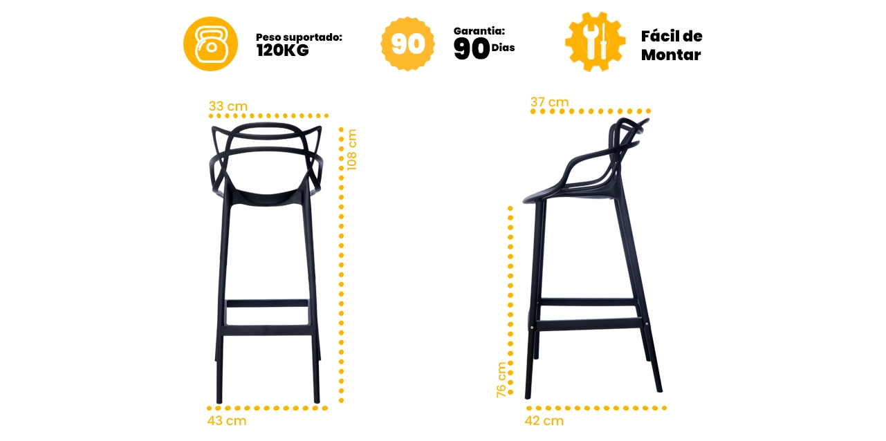 A Banqueta Allegra Waw Design une design moderno, conforto e durabilidade, sendo ideal para cozinhas, áreas gourmet, bares ou salas de estar. Fabricada em polipropileno de alta resistência, oferece assento confortável e estrutura robusta no uso diário.