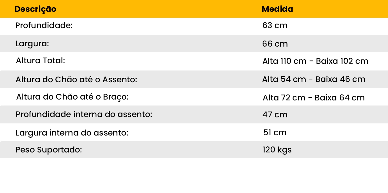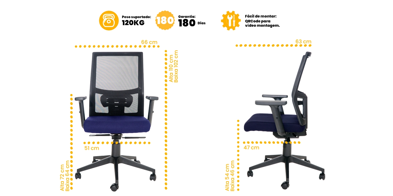 Com visual elegante e estrutura robusta, conta com assento giratório, ajuste de altura a gás, encosto reclinável com travamento e braços com regulagem vertical, garantindo liberdade de movimento e postura correta ao longo do dia.