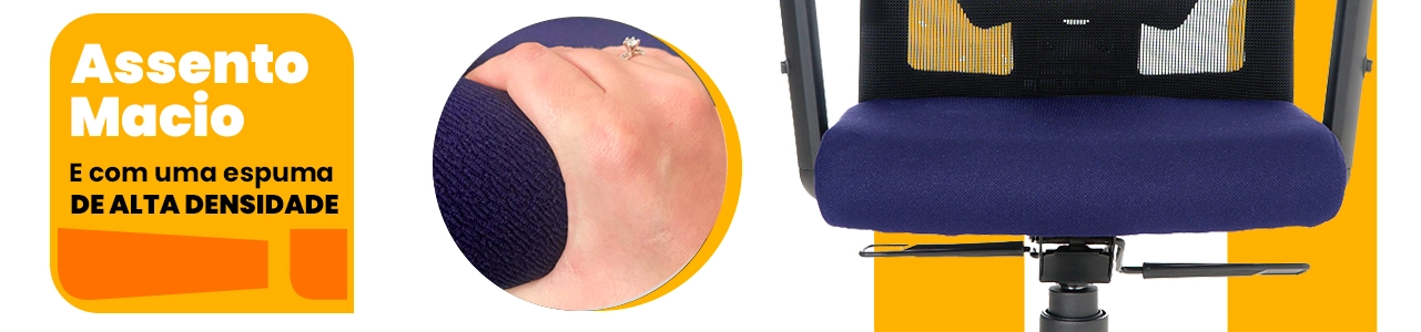 O encosto em tela Mesh de alta resistência proporciona ventilação contínua, enquanto o assento com estrutura em madeira e espuma de alta densidade D35 oferece firmeza e conforto mesmo em jornadas prolongadas.