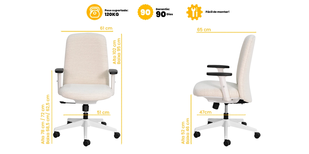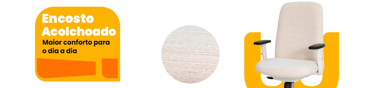 O estofamento em tecido de linho, extremamente macio ao toque, entrega uma experiência premium desde o primeiro uso, além de um acabamento elegante e atemporal. O encosto ergonômico com sistema relax permite movimentos suaves, com opção de trava para maior estabilidade nos momentos que exigem foco e postura correta.