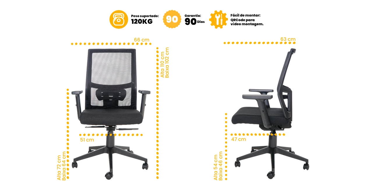 Com a cadeira Flex Mesh Diretor da WAW Design você terá o conforto é o bem-estar que precisa ao longo do seu dia, já que está em conformidade com NR17. A Flex Mesh é uma cadeira ergonômica que preserva a sua saúde e eleva seu conforto por longas horas de uso. O encosto tem a função Back System, onde ele retorna para a posição inicial lentamente, protegendo a sua coluna de movimentos bruscos, além de contar com ótimo acabamento. Você pode colocá-la em qualquer lugar da sua casa ou home office, pois o seu design se adapta a vários ambientes. O encosto e o assento são revestidos em uma tela Mesh de alta qualidade, permitindo ótima ventilação com muita resistência e durabilidade, além do assento ser macio com uma espuma D30. Os braços tem um acabamento emborrachado e macio, o encosto possui suporte ajustável de altura para a lombar e as rodas são antirrisco para preservar o seu assoalho sem risco algum e suporta até 120 quilos.