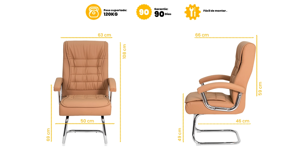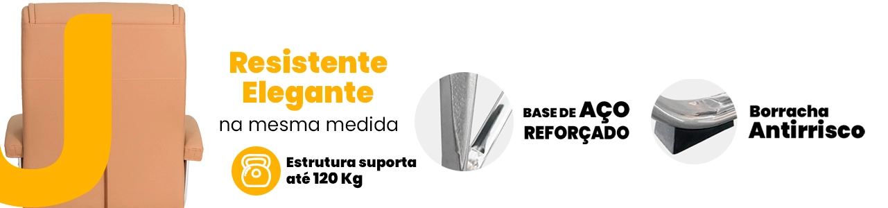 A base fixa em aço cromado confere estabilidade, segurança e um visual moderno, ideal para ambientes que exigem elegância e menor mobilidade. O revestimento em couro sintético PU une sofisticação, resistência e fácil limpeza, enquanto os braços ergonômicos oferecem apoio confortável para o dia a dia.