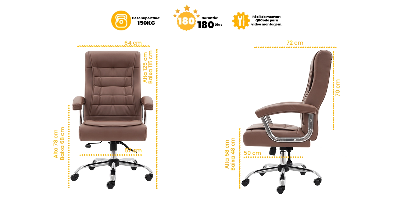 A Cadeira de Escritório Big Presidente da WAW Design é a escolha perfeita para quem busca conforto, durabilidade e sofisticação no dia a dia. Seu assento anatômico com molas ensacadas se adapta ao corpo, oferecendo suporte ideal para longas jornadas de trabalho. O encosto reclinável com sistema relax proporciona momentos de descanso com total ergonomia. Com estrutura robusta e pistão a gás classe 3, suporta até 150 kg com segurança. Os rodízios anti-risco em polipropileno garantem mobilidade suave sem danificar o piso, sendo ideal para ambientes corporativos ou home office. Revestida em couro sintético de alta qualidade, une design moderno e funcional em um único produto.
