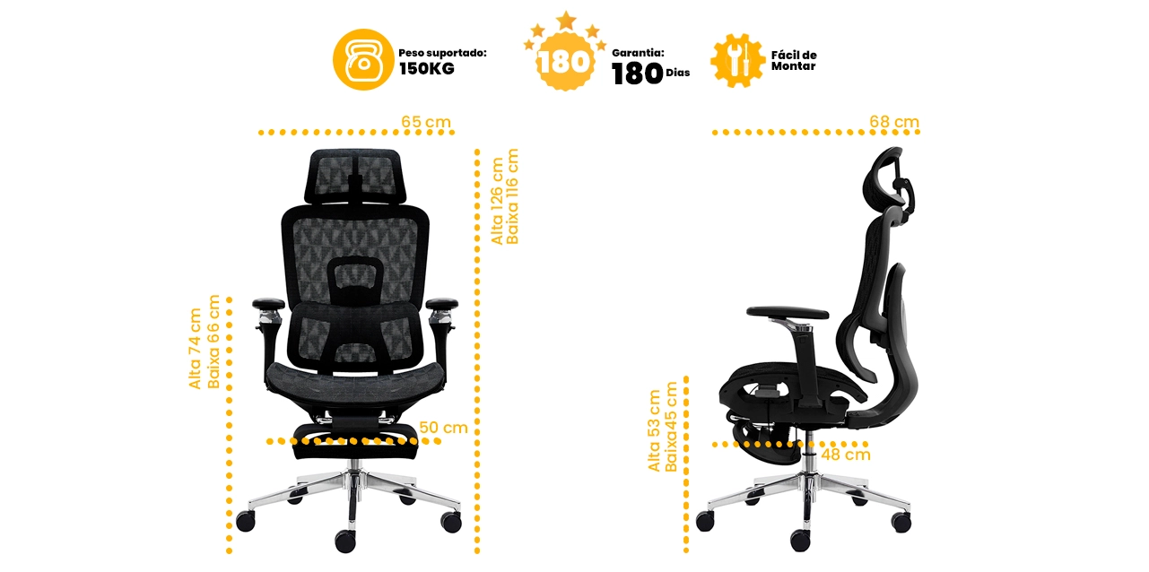 A cadeira Bee é simplesmente inesquecível, com seu apoio ajustável para os pés e o suporte para a lombar com amortecimento, o conforto não tem limites! Grande qualidade e acabamento sofisticado. O encosto tem uma textura linda em forma de colmeia em toda tela mesh, do assento ao suporte da cabeça. O assento tem ajuste de profundidade, indo para frente e para trás, permitindo uma postura agradável. Possui os braços 5D, podendo ajustar a altura dos braços, a distância entre os braços, aproximando ou afastando-os do corpo, pode movimentar a profundidade do apoio, para frente e para trás, para apoiar melhor os antebraços, pode também girar o apoio de braço para dentro ou para fora, adaptando-se à posição das mãos e do teclado e permite mover o apoio para os lados, esquerda ou direita, sem mudar o ângulo. O Apoio para cabeça, também em tela mesh, conta com 3 pontos de ajustes, uma para regular o ângulo da base, um para o ângulo do topo do apoio e um para ajustar até 5 níveis de altura, promovendo maior conforto e evitando lesões no pescoço. O sistema relax permite inclinar a cadeira para aumentar a sensação de relaxamento, além de travar no ângulo que desejar. O pistão de classe 3 suporta até 150 quilos e possui rodas antirrisco.