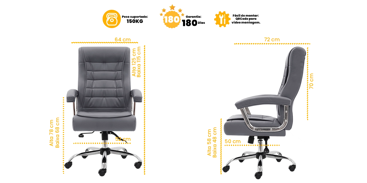 A Cadeira de Escritório Big Presidente da WAW Design é a escolha perfeita para quem busca conforto, durabilidade e sofisticação no dia a dia. Seu assento anatômico com molas ensacadas se adapta ao corpo, oferecendo suporte ideal para longas jornadas de trabalho. O encosto reclinável com sistema relax proporciona momentos de descanso com total ergonomia. Com estrutura robusta e pistão a gás classe 3, suporta até 150 kg com segurança. Os rodízios anti-risco em polipropileno garantem mobilidade suave sem danificar o piso, sendo ideal para ambientes corporativos ou home office. Revestida em couro sintético de alta qualidade, une design moderno e funcional em um único produto.