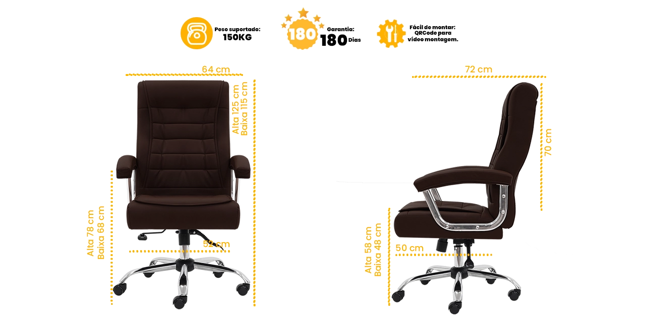 Seu design imponente, com estofado em couro sintético (PU) de alta qualidade, une elegância, resistência e fácil manutenção, ideal para uso intenso no dia a dia.