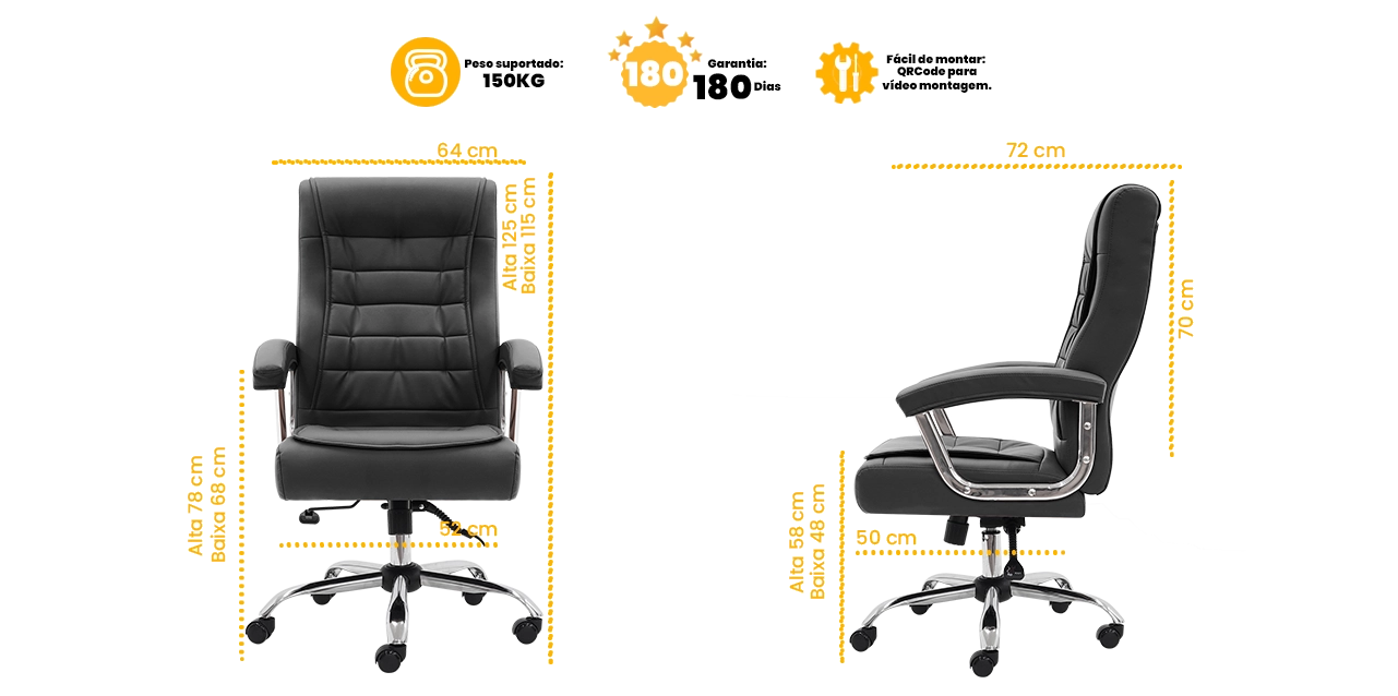 Seu design imponente, com estofado em couro sintético (PU) de alta qualidade, une elegância, resistência e fácil manutenção, ideal para uso intenso no dia a dia.