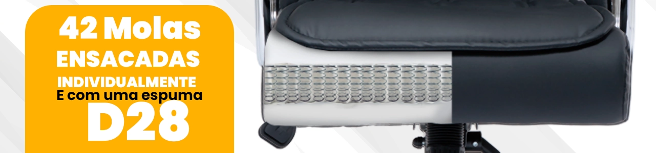 O grande diferencial está no assento anatômico com molas ensacadas (pocket), que se adapta ao corpo e distribui o peso de forma equilibrada, garantindo conforto prolongado mesmo após longas horas de uso.