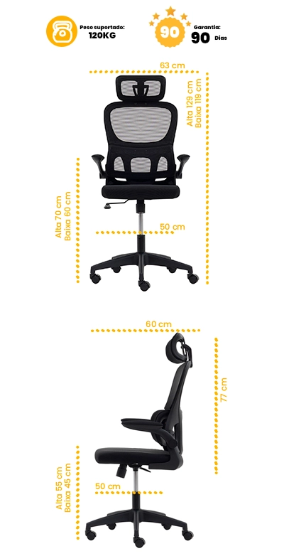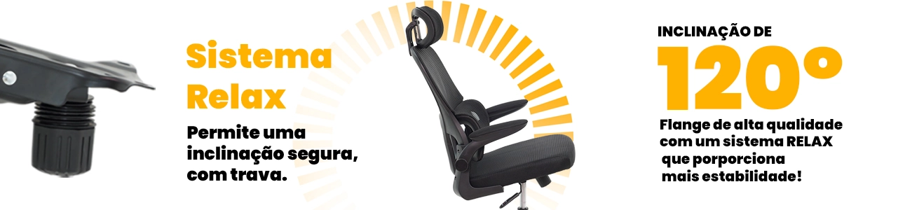 Com design atual, esta cadeira leva mais conforto para diferentes ambientes, seja no escritório ou no home office. O apoio lombar integrado com amortecimento é perfeito para quem permanece muitas horas sentado, auxiliando na correção da postura e reduzindo possíveis incômodos. Para momentos de descanso, oferece a função relax, que permite inclinar o assento de forma prática. Os braços possuem acabamento acolchoado com ótimo acabamento e são articulados, proporcionando mais praticidade no uso diário, podendo levantar totalmente os braços da cadeira para agilizar a mobilidade no seu dia a dia. Seu encosto em tela Mesh de alta qualidade permite maior ventilação, e o assento conta com uma espuma muito confortável e macia, também revestida em tela Mesh com ótimo acabamento. As rodas antirrisco facilitam a movimentação do espaço e assento giratório de 360º, suporta até 120 quilos, e tem um confortável encosto de cabeça com ajuste de ângulo e altura para adaptar ao seu corpo.