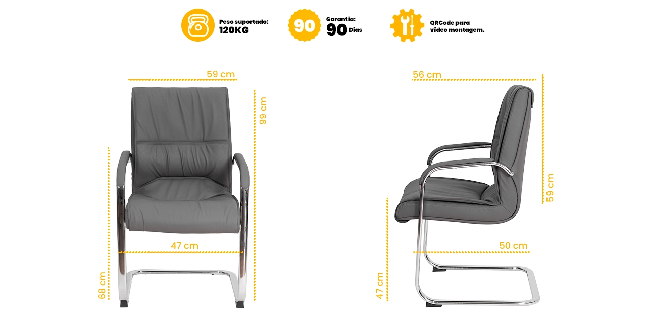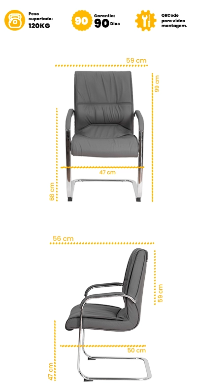 A estrutura robusta foi desenvolvida para longas jornadas de trabalho, garantindo segurança e bem-estar ao longo do dia. Já a base fixa em aço com acabamento cromado proporciona apoio firme e estabilidade, acrescentando um toque de elegância que reforça o alto padrão da cadeira Big de escritório.