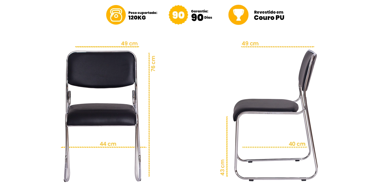 A estrutura robusta em aço cromado garante resistência e longa vida útil, suportando rotinas intensas com segurança. Com ergonomia bem definida, a Dakar proporciona apoio adequado, ideal para reuniões, atendimentos e momentos de espera.