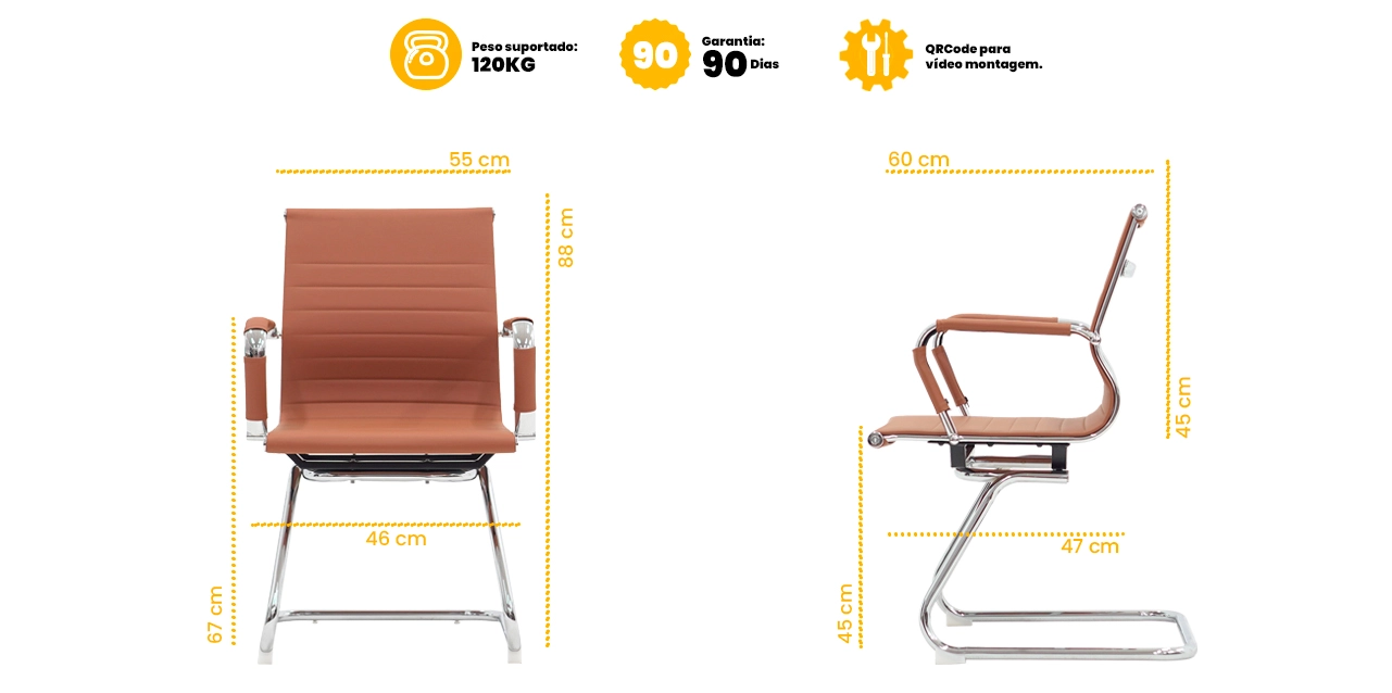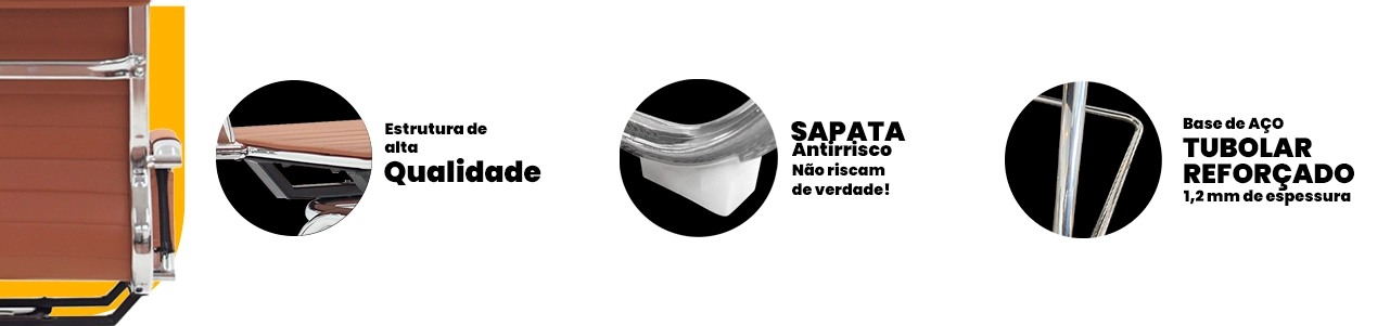 A estrutura reforçada, aliada à base em aço cromado, proporciona estabilidade, resistência e longa vida útil, mantendo o visual moderno e profissional ao longo do tempo.