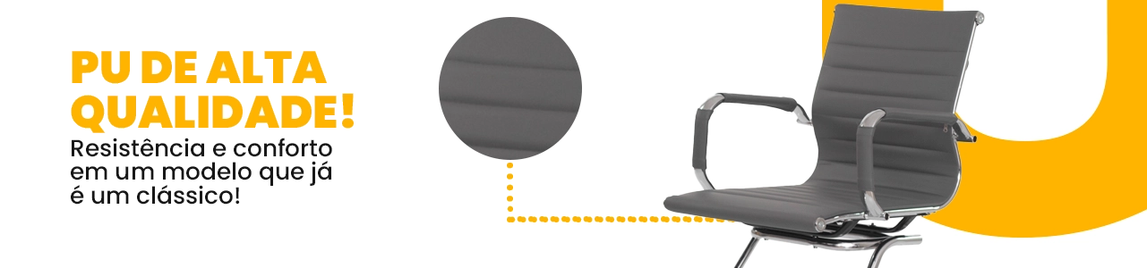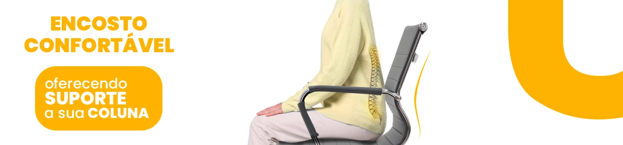Seu assento e encosto em peça única, revestidos em PU de alta qualidade, oferecem toque macio, fácil manutenção e excelente suporte para a coluna, garantindo postura correta e conforto mesmo durante longos períodos de uso.