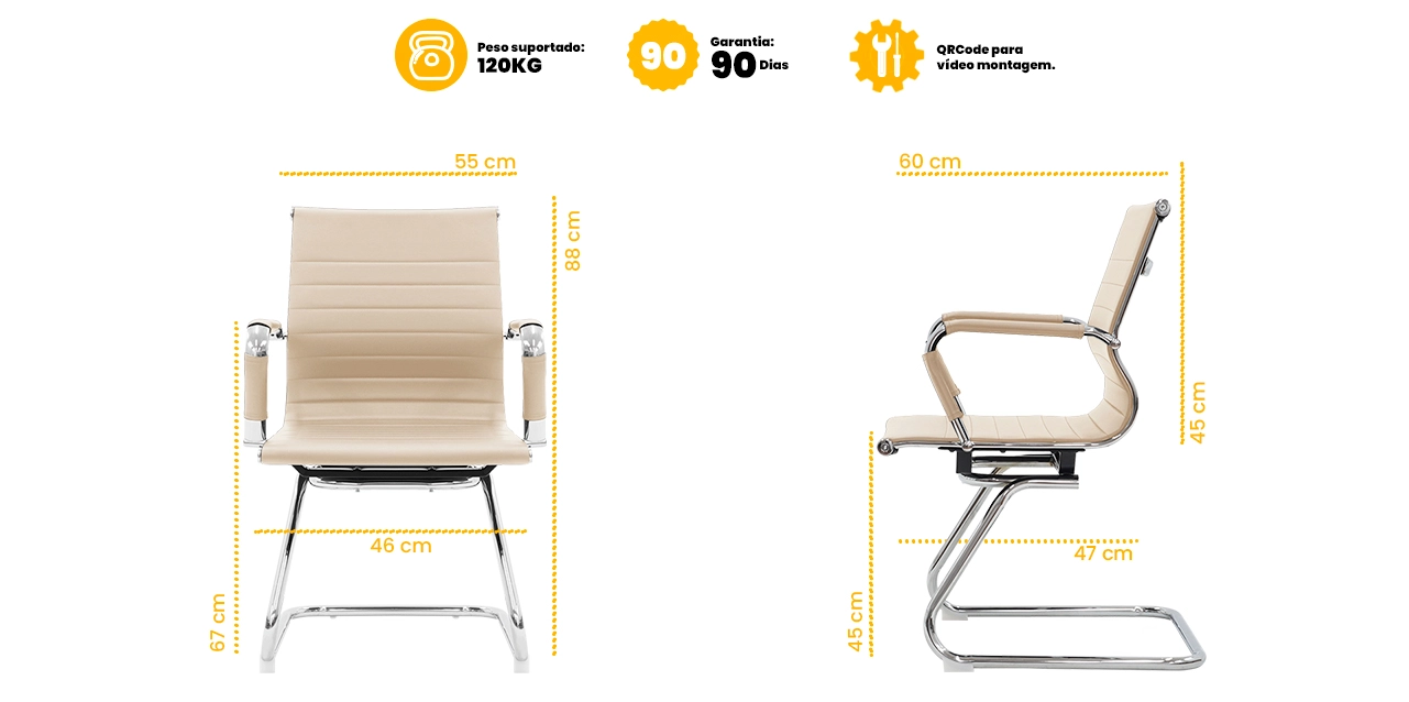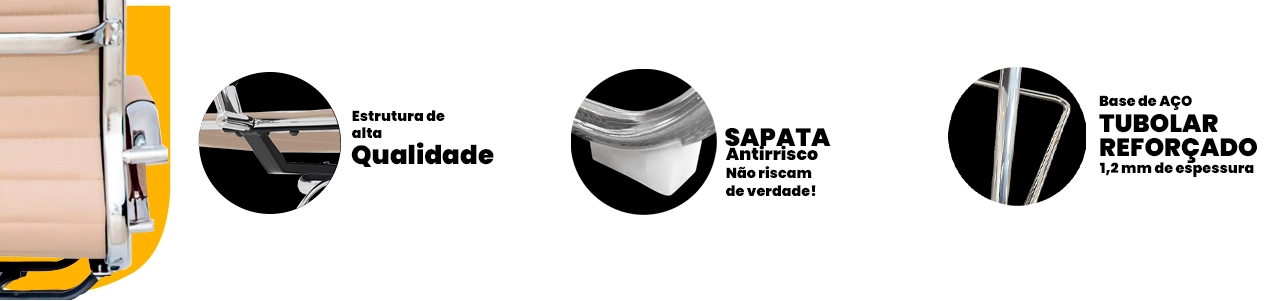 A estrutura reforçada, aliada à base em aço cromado, proporciona estabilidade, resistência e longa vida útil, mantendo o visual moderno e profissional ao longo do tempo.