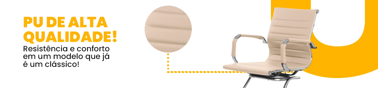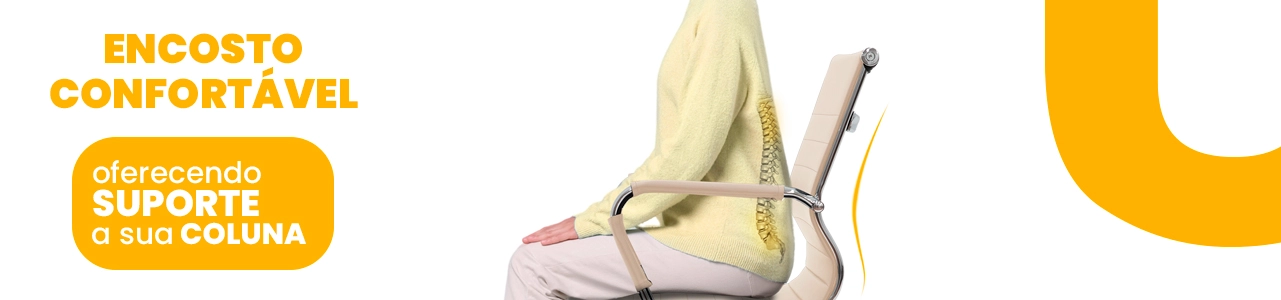 Seu assento e encosto em peça única, revestidos em PU de alta qualidade, oferecem toque macio, fácil manutenção e excelente suporte para a coluna, garantindo postura correta e conforto mesmo durante longos períodos de uso.