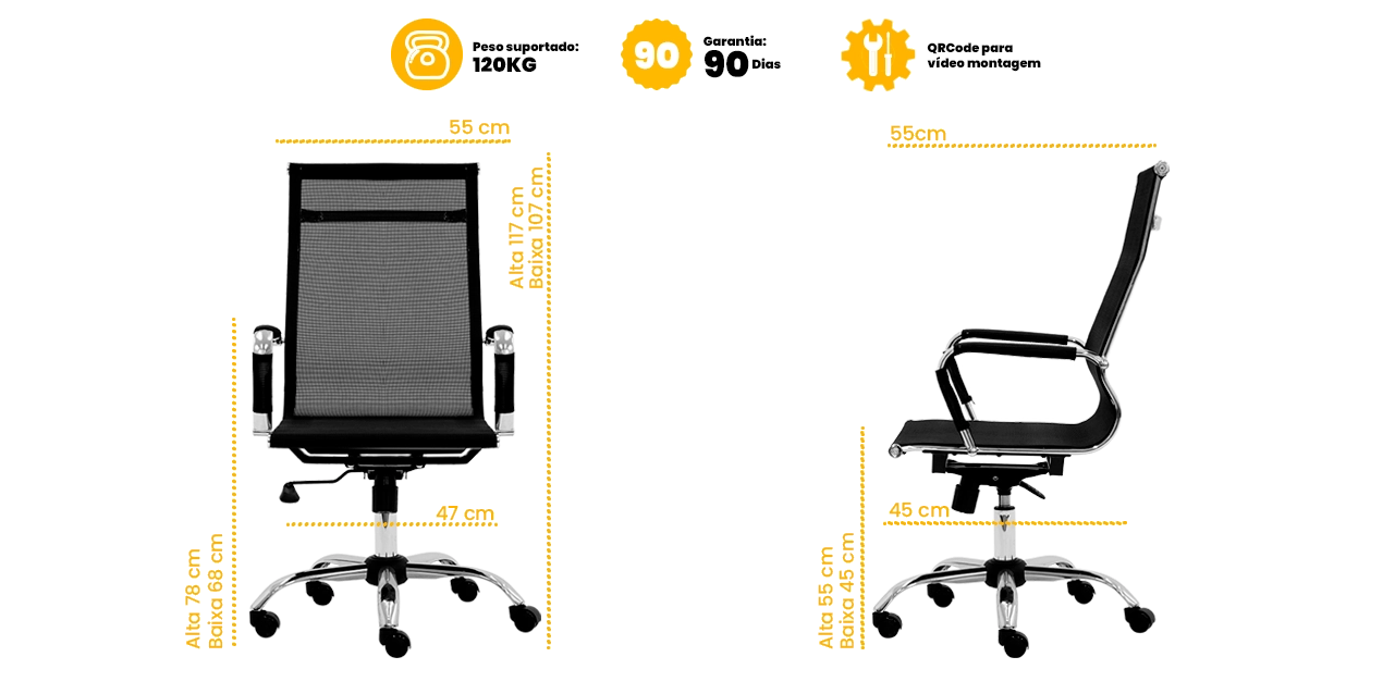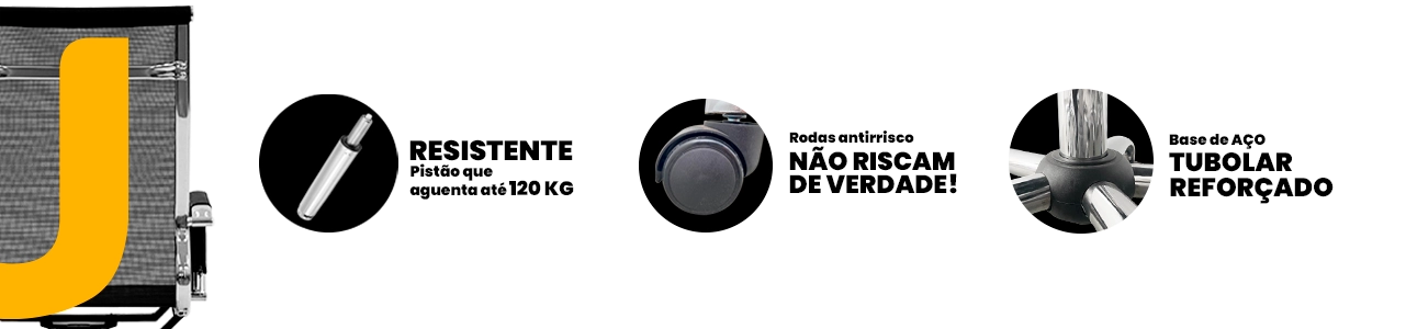 A base estrela em aço cromado assegura estabilidade, resistência e acabamento moderno. Conta ainda com giro 360° e rodízios, proporcionando mobilidade suave e funcionalidade no uso diário.