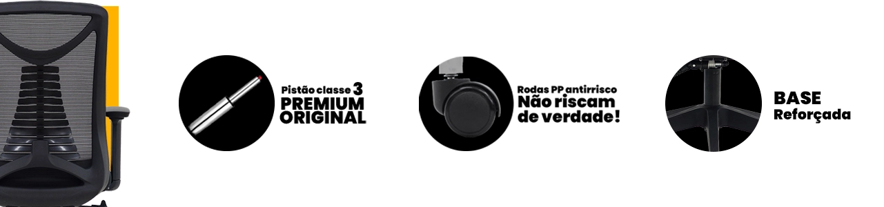A base em polipropileno assegura resistência, estabilidade e longa vida útil, resultando em uma cadeira funcional, moderna e pensada para elevar seu desempenho com mais saúde e bem-estar.