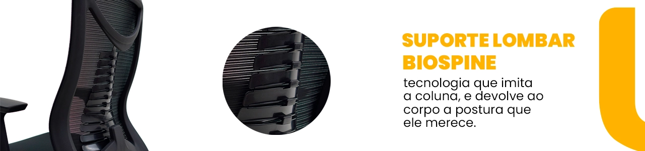 O grande destaque fica por conta do apoio lombar modelo Vértebra, que auxilia na postura correta da coluna, reduzindo o cansaço. Os braços 3D ajustáveis permitem personalização total, enquanto o mecanismo Relax com ajuste sincronizado proporciona movimentos suaves e maior conforto.