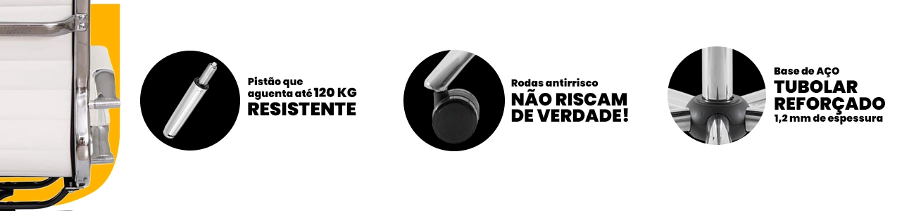 Sua estrutura robusta, aliada à base em aço cromado, oferece estabilidade, resistência e durabilidade, além de agregar um acabamento moderno e sofisticado ao ambiente.