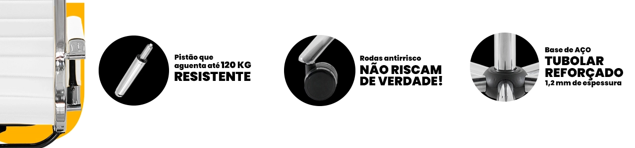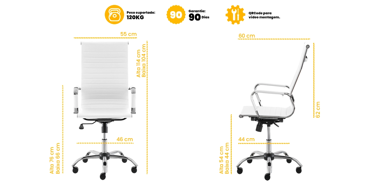 Cadeira Escritório Stripes Presidente PU Branca Base Giratória Cromada Altura Ajustável