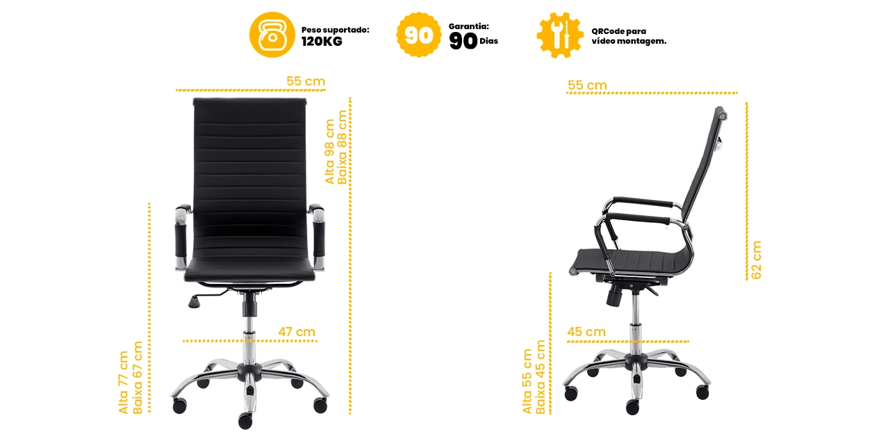 Sua estrutura robusta, aliada à base em aço cromado, assegura resistência, estabilidade e durabilidade para o uso diário, além de agregar um acabamento elegante ao ambiente.