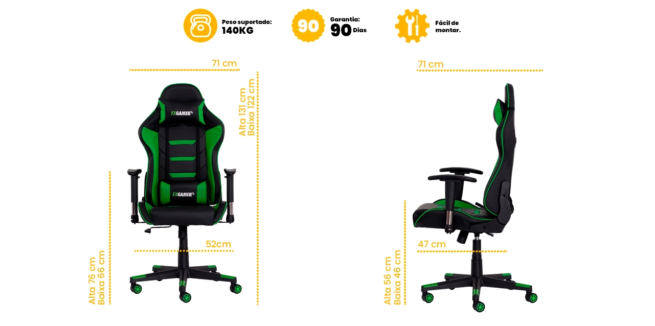 Cadeira Gamer II Reclinável 180º Giratória Preta com Verde Altura Ajustável Função Relax