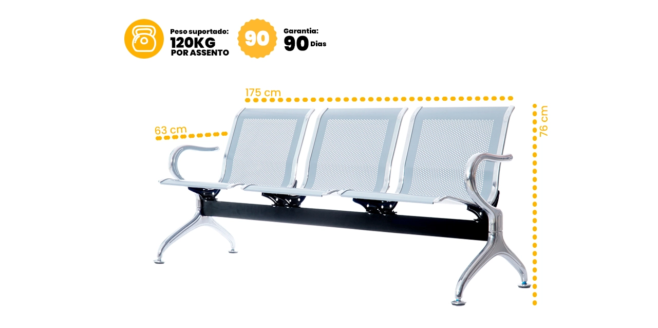 Cadeira Longarina Aeroporto Cromada 3 Lugares - Sala de espera