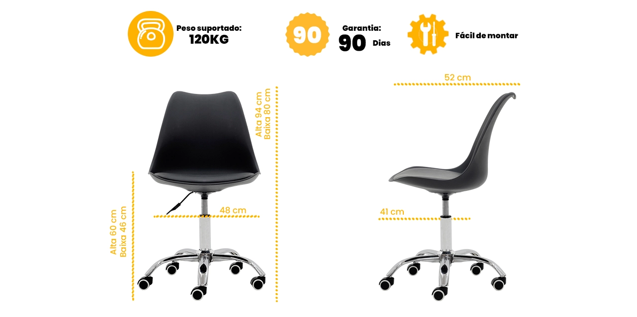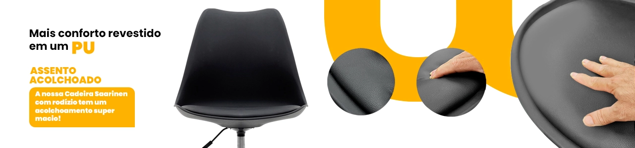 Com altura ajustável, a Cadeira Saarinen permite uma regulagem personalizada, adaptando-se facilmente a diferentes usuários e tipos de mesa. A base giratória com rodízios proporciona mobilidade e agilidade, facilitando o deslocamento e contribuindo para uma rotina mais dinâmica.