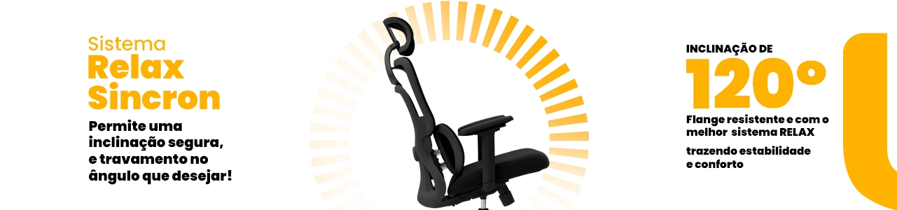 O sistema de reclinação com flange excêntrica entrega movimentos suaves e inteligentes, permitindo alternar entre foco e relaxamento com total controle.
