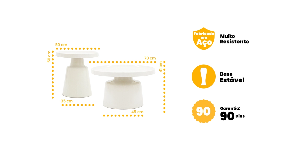 O produto é comercializado em pares do mesmo acabamento, com opções de par na cor preta ou par na cor branca, permitindo escolher a versão que melhor se adapta ao estilo do ambiente. A composição em dois tamanhos cria um jogo de alturas elegante, que valoriza a decoração e otimiza o espaço.