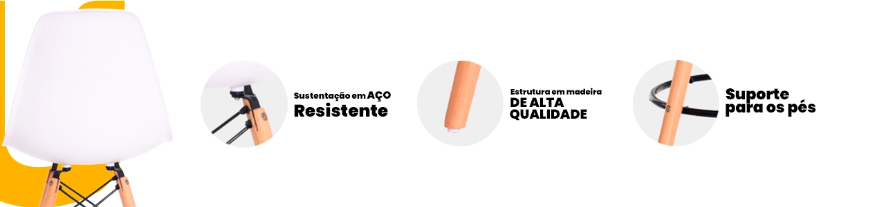 O assento em polipropileno oferece conforto e fácil limpeza, enquanto a base em madeira garante estabilidade, resistência e um toque sofisticado ao ambiente. O apoio para os pés proporciona ainda mais conforto durante o uso, tornando a experiência muito mais agradável.