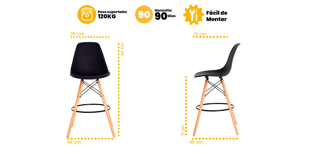 O assento em polipropileno oferece conforto e fácil limpeza, enquanto a base em madeira garante estabilidade, resistência e um toque sofisticado ao ambiente. O apoio para os pés proporciona ainda mais conforto durante o uso, tornando a experiência muito mais agradável.