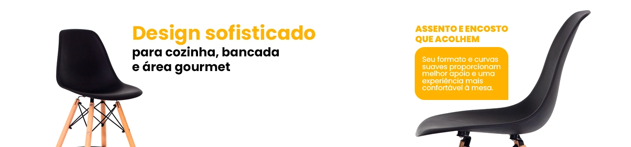 A Banqueta Alta Eiffel Eames é a escolha certa para quem busca design moderno, conforto e versatilidade. Ideal para cozinhas, bancadas, áreas gourmet, bares e ambientes comerciais, ela combina estilo contemporâneo com funcionalidade no dia a dia.