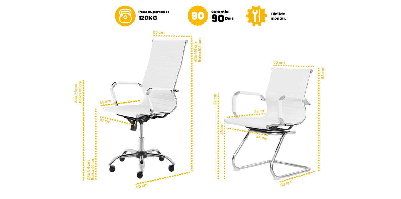 As estruturas reforçadas com base em aço cromado asseguram estabilidade, resistência e acabamento moderno, sendo ideais para escritórios, salas de reunião, salas de espera e espaços executivos.