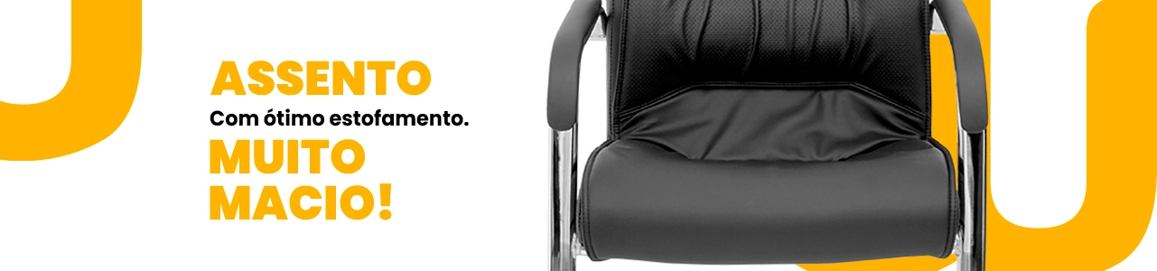 As cadeiras possuem estofado em couro sintético PU, garantindo conforto, durabilidade e fácil manutenção. A versão Presidente conta com assento anatômico com molas ensacadas, ajuste de altura e sistema Relax, enquanto as cadeiras fixas oferecem estabilidade e postura firme.