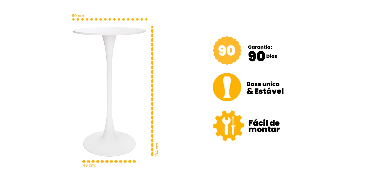 Mesa Bistrô Saarinen Tulipa Redonda Branca 60cm Waw Design