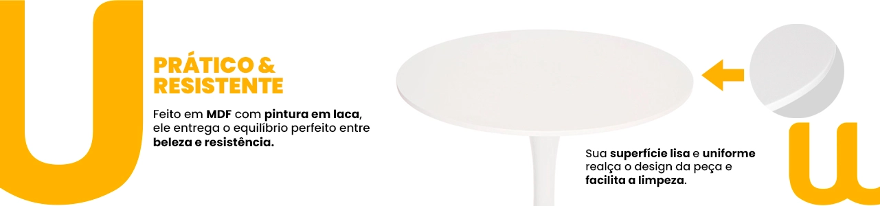 Produzida em MDF de alta qualidade, conta com acabamento em tinta laca, que garante superfície lisa, toque refinado e fácil limpeza, a base em aço pintado oferece estabilidade, resistência e maior durabilidade no uso diário.