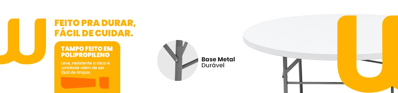 A Mesa Dobrável Redonda Branca da Waw Design é a solução ideal para quem busca praticidade, mobilidade e versatilidade no dia a dia. Com acabamento clean e visual neutro, adapta-se facilmente a diferentes ambientes e situações, desde o uso residencial até eventos, feiras, reuniões, trabalhos manuais, áreas externas e momentos de lazer.