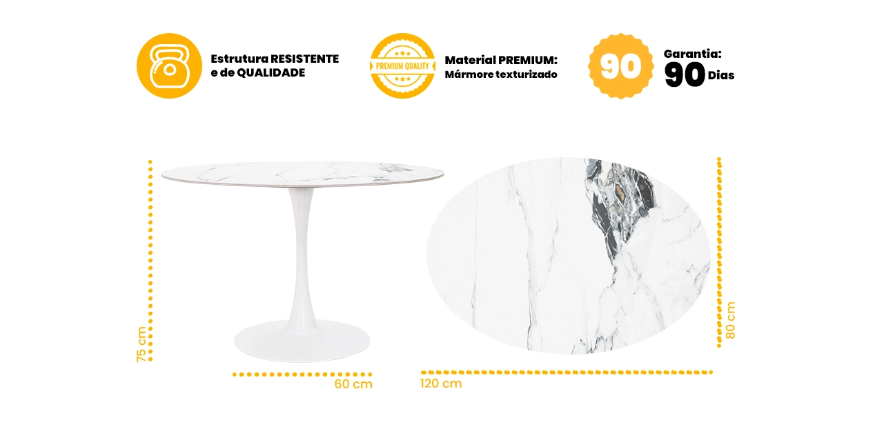 Mesa Saarinen Tulipa Jantar Oval 120x80cm Tampo Marmorizado