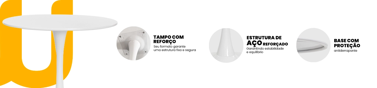A base em aço garante estabilidade, resistência e durabilidade, tornando a mesa perfeita para uso frequente em salas de jantar, escritórios, recepções, cafés ou espaços gourmet.