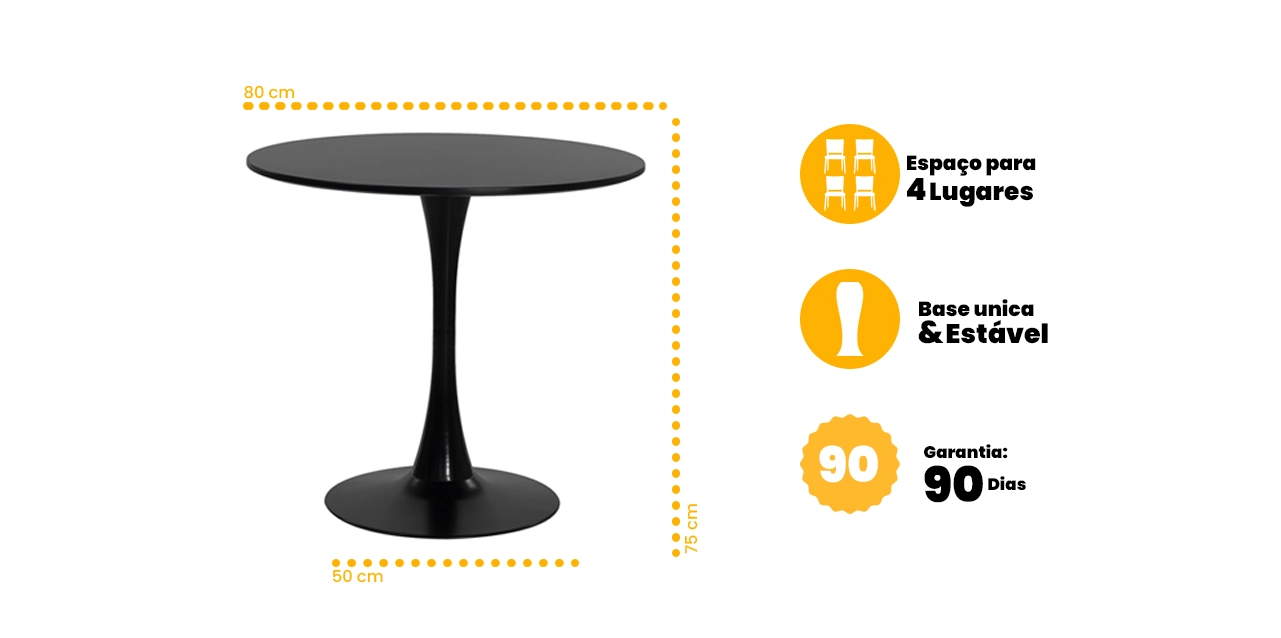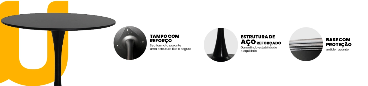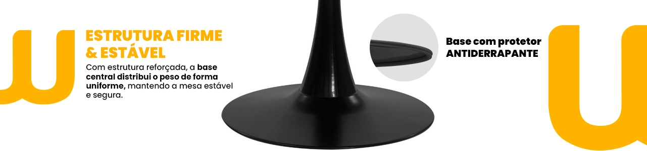 A base em aço garante estabilidade, resistência e durabilidade, tornando a mesa perfeita para uso frequente em salas de jantar, escritórios, recepções, cafés ou espaços gourmet.