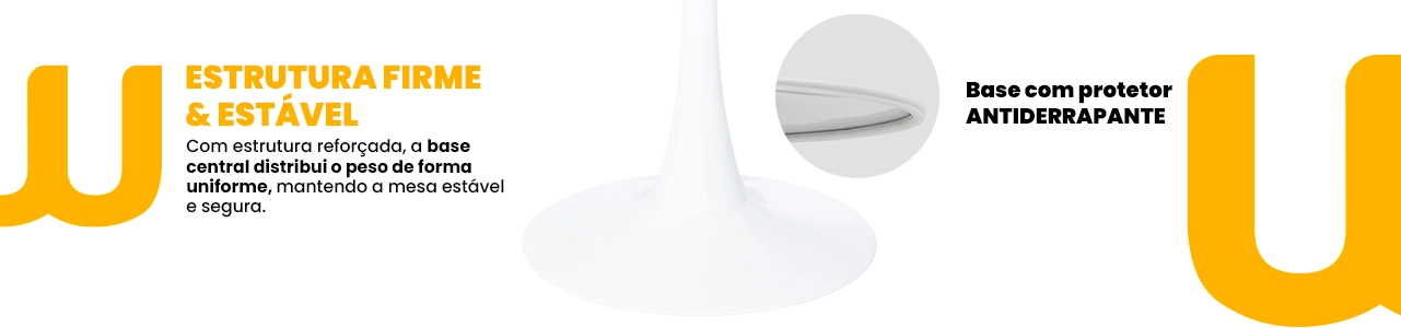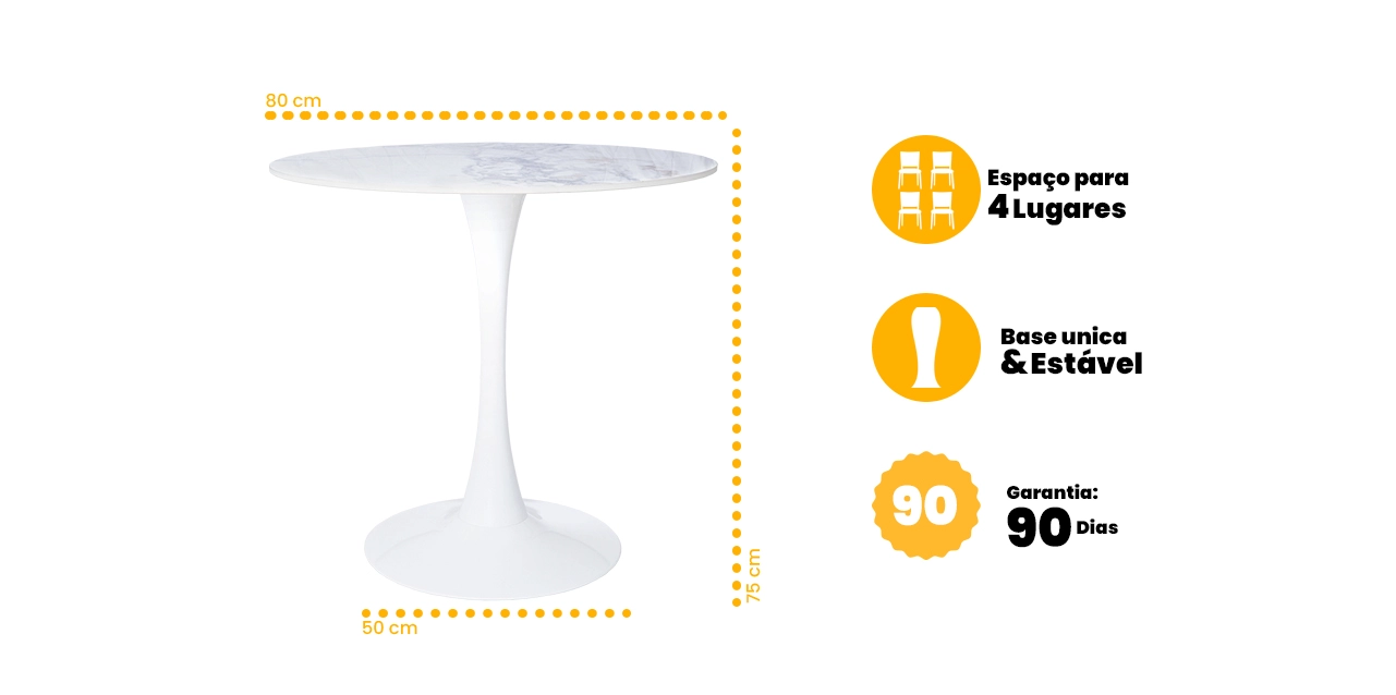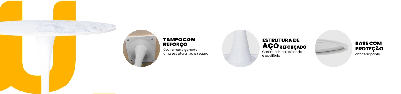 A base em aço garante estabilidade, resistência e durabilidade, tornando a mesa perfeita para uso frequente em salas de jantar, escritórios, recepções, cafés ou espaços gourmet.