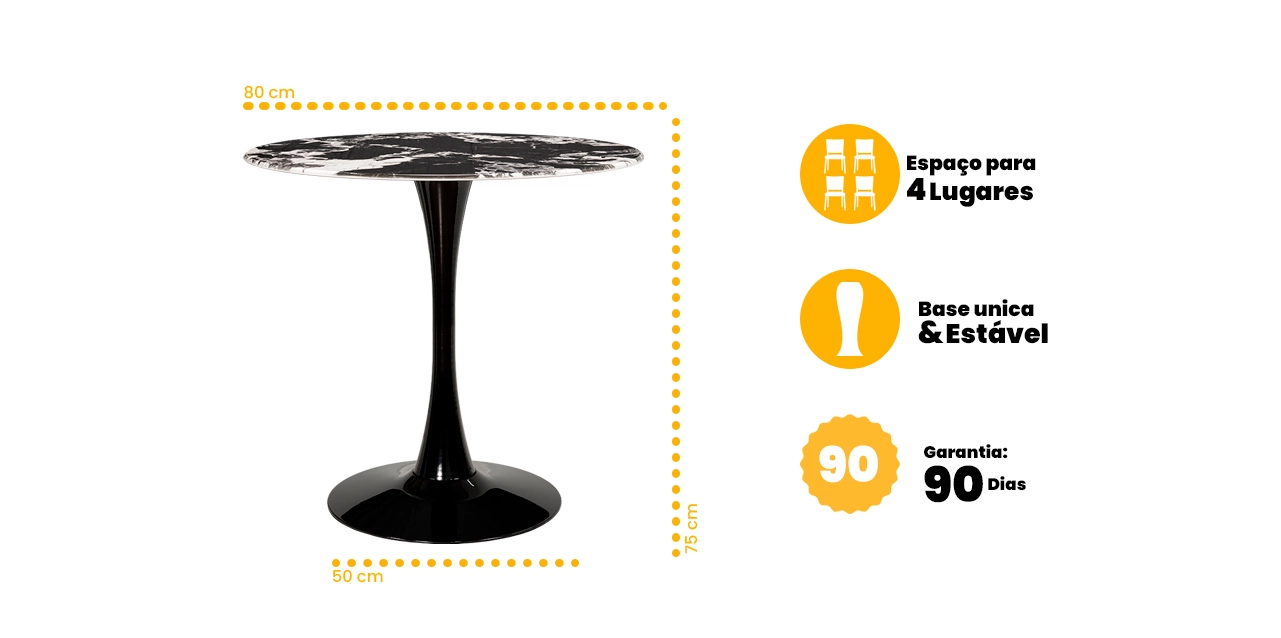 A base em aço garante estabilidade, resistência e durabilidade, tornando a mesa perfeita para uso frequente em salas de jantar, escritórios, recepções, cafés ou espaços gourmet.