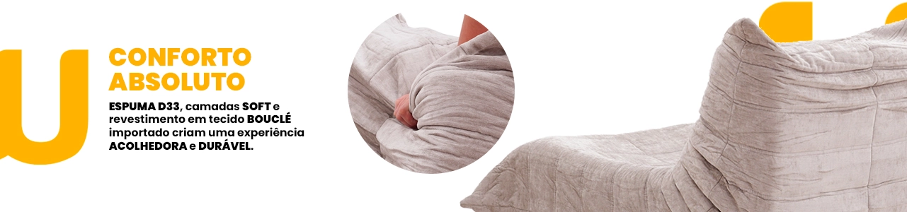 Produzida com materiais premium, combina espumas de alta densidade e camadas soft para oferecer conforto profundo e durabilidade. O revestimento em tecido bouclé acrescenta textura, aconchego e sofisticação, enquanto a estrutura interna reforçada garante estabilidade no uso diário.